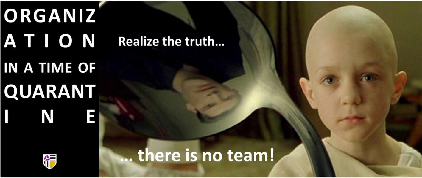 For me, like many others around the world, this is the fourth week of WFH (work from home). Already I see my staff weary and tired from being always on video conferencing. While their anxiety levels rise from the news of the crisis and managing a confined domestic life rarely stepping outside of home, they find themselves constantly on Microsoft Teams in video chat with colleagues. I do not believe that our initial reaction to WFH is sustainable: this tactical choice to try and maintain normal workplace interaction via technology connections cannot be sustained. As the days turn to weeks, and weeks to months, and we recognize that the world is changed forever, we need to think differently about work, organization and leadership: do not try to bend existing ways of leading and working to the new reality of a remote workforce, that’ll be impossible. Instead only try to realize the truth… there is no team!